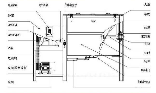 佛山除油粉不銹鋼臥式攪拌機(jī)結(jié)構(gòu)圖: